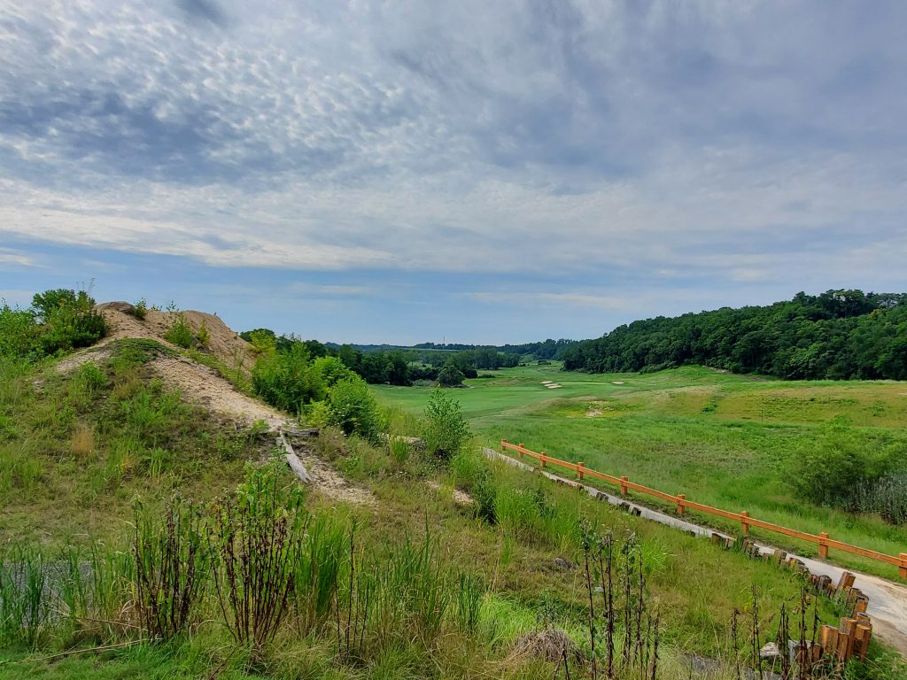 One development that takes a look back into the past rather than ahead at the future is the course’s newly released logo. A sand miner, one hand on hip and the other grasping a golf club, honors the workers who were ever-present near Hempstead Harbor in the late 1800s and early 1900s when the region was mined to build the infrastructure of New York City. Harbor Links was developed inside one of the industrial sand quarries in 1998.